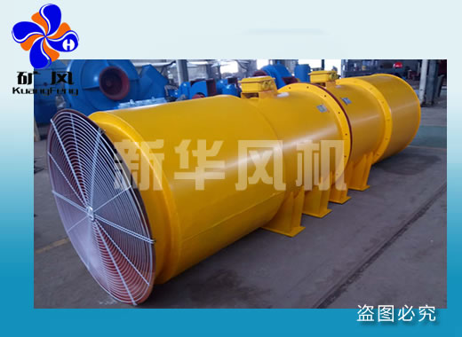 SDF series Push-rotating axial local fan, is from Zibo Xinhua fan limited review of domestic existing contra-rotating axial flow fan structure and technical performance on the basis of the development, and the production of a new generation of wide use of new energy-saving ventilating machine local. The product has the advantages of reasonable structure, complete specifications, high efficiency, obvious energy saving effect, low noise, air distance and so on. According to the different ventilation resistance requirements, can the use can be graded using, thereby reducing ventilation power consumption, energy saving. Tunnel length within2000mcan not move the fan normal air supply, reduce the labor intensity of the workers, saving ventilation time, is ideal equipment for coal mine local ventilation in mine. At the same time, it can also be used in metallurgy, nonferrous metals, gold, chemical industry, shipbuilding and ceramic industry and other high pressure ventilating occasion. The structure characteristics of mining flameproof, counter-rotating, muffler, axial flow.